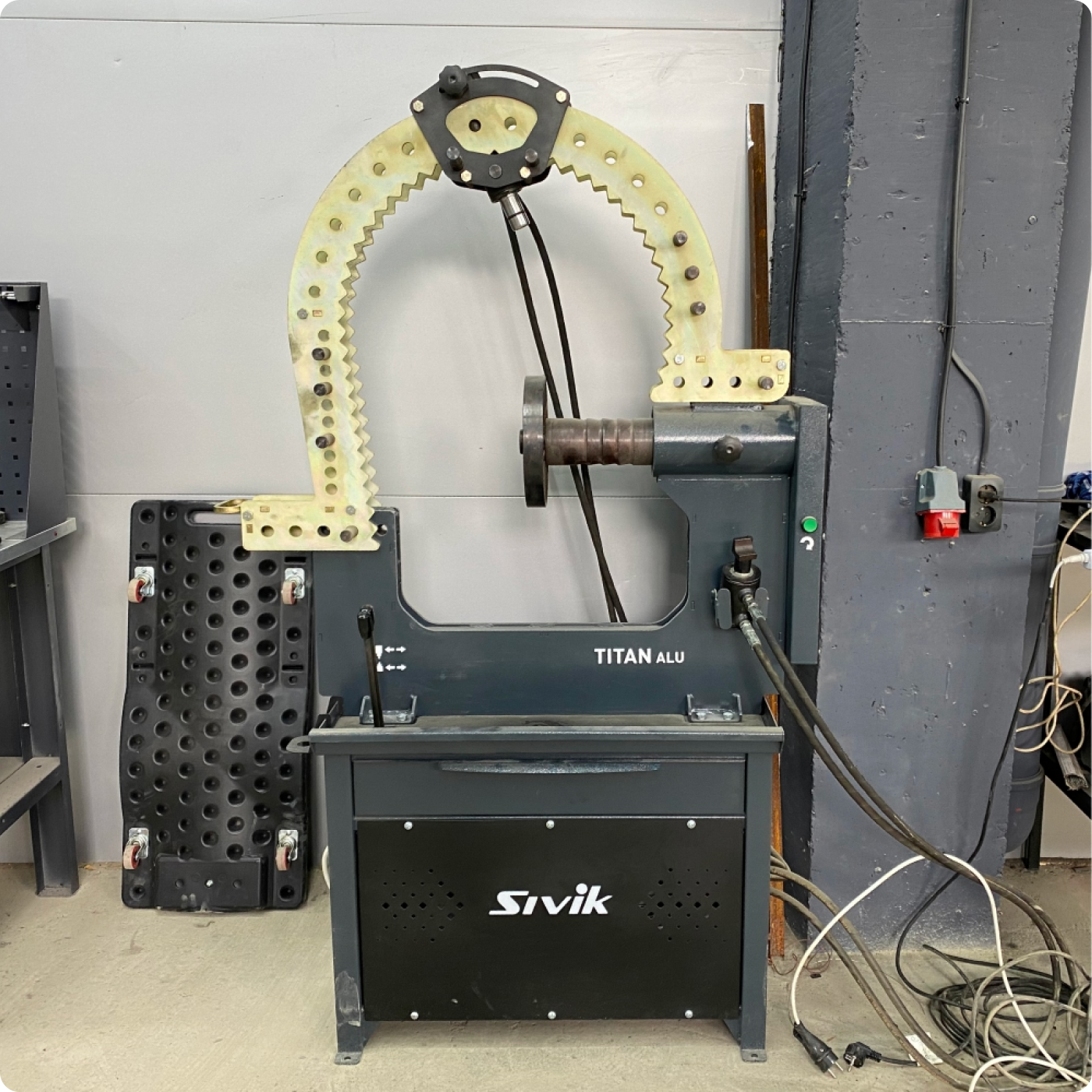 • полуавтоматические. Такое оборудование предусматривает ручное позиционирование монтажной головки и фиксации с помощью зажимного механизма . Фиксация осуществляется с помощью механического устройства. В свою очередь, вращение стола производится автоматически после нажатия на педаль. В качестве примера недорогого, но функционального полуавтоматического станка можно привести модель SIVIK КС-302А, способную работать с колесами диаметром от 10 до 24 дюймов;