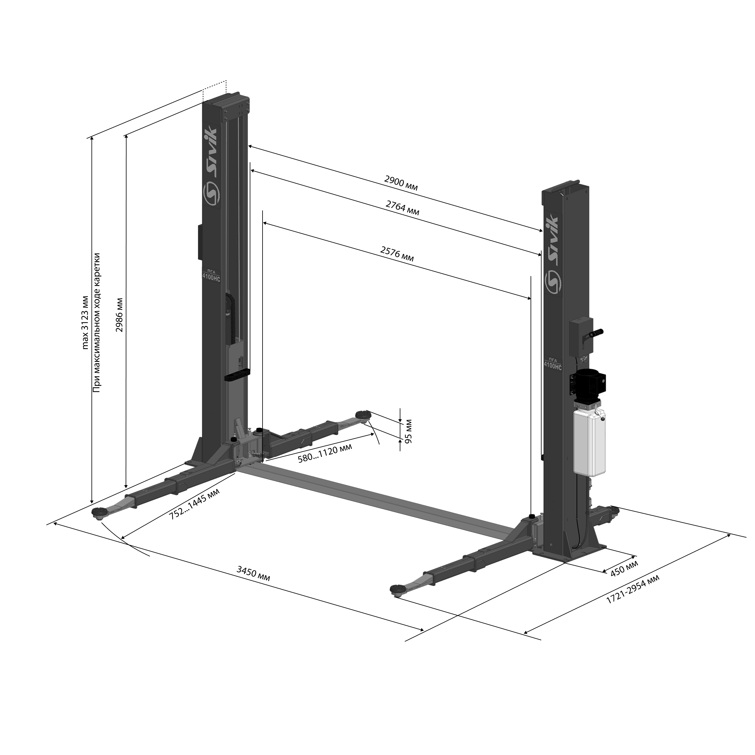 картинка Двухстоечный электрогидравлический подъемник ПГА-4100-НС (3+3) Sivik