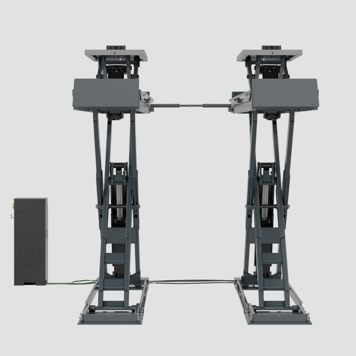 • Ножничный подъемник с подъемником второго уровня и встроенным люфт-детектором для обслуживания легковых автомобилей общей массой до 4,0 т