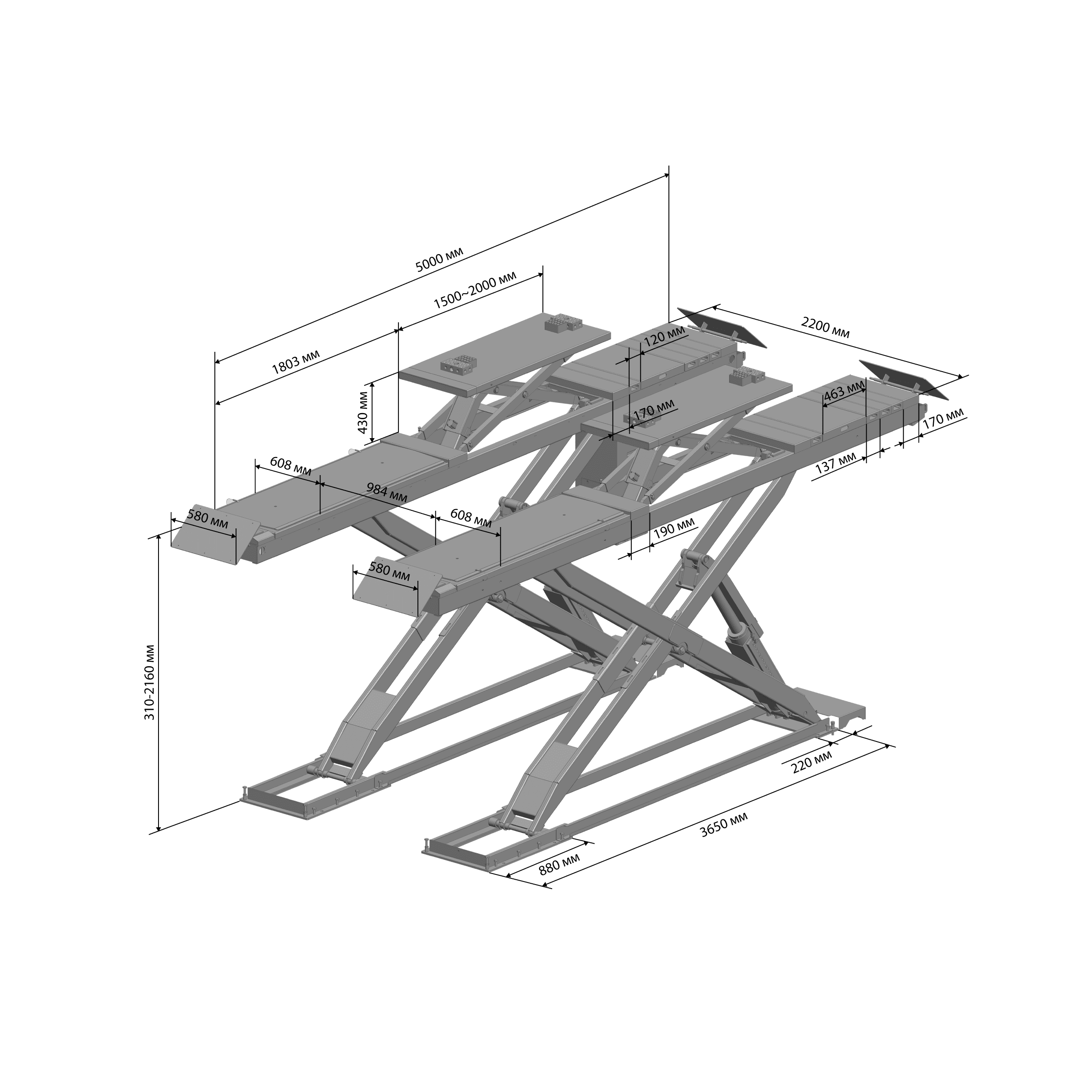 Показать всё- Удлиненный ножничный подъемник общей массой до 5,0 т