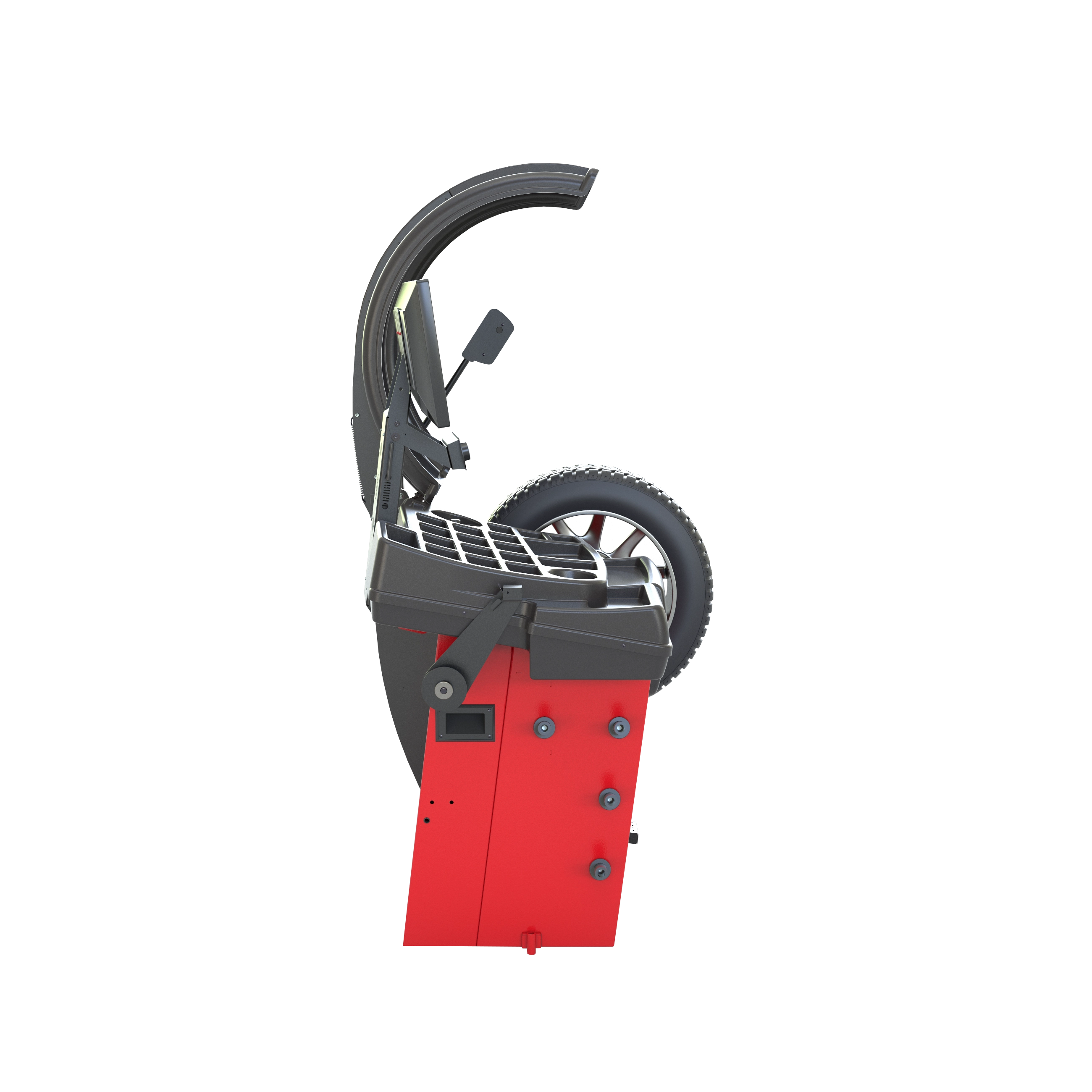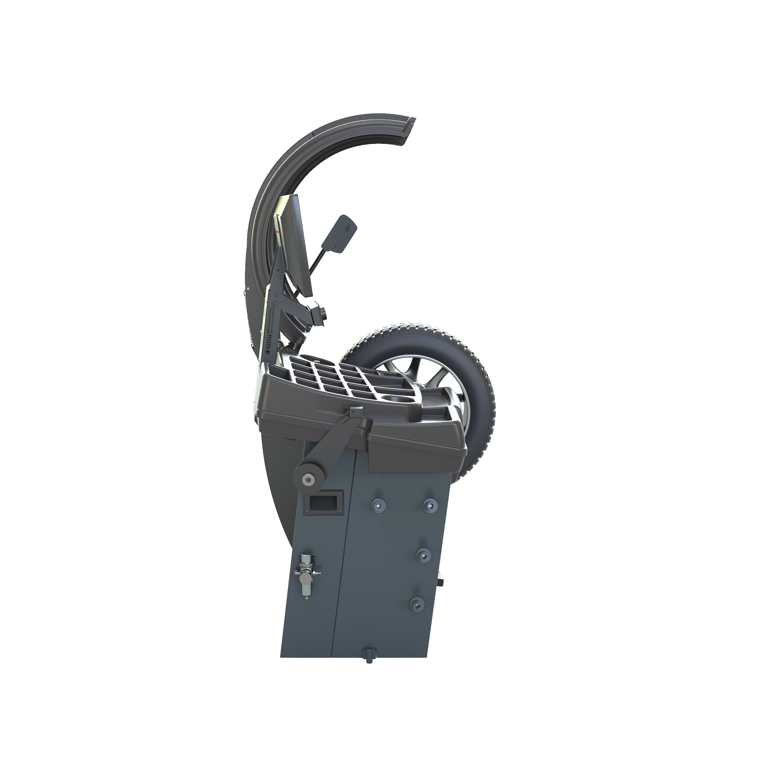 Станок балансирует экстремальные грязевые колеса (при открытом кожухе до 39” , при закрытом кожухе до 37”)
